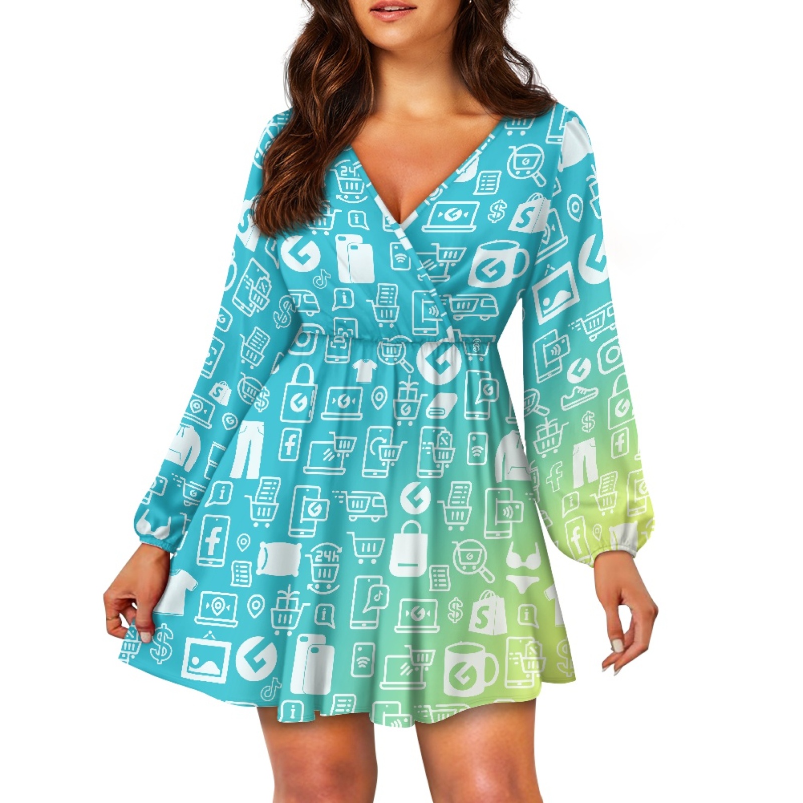 V-Neck Long Sleeve Tie Waist Midi Dress