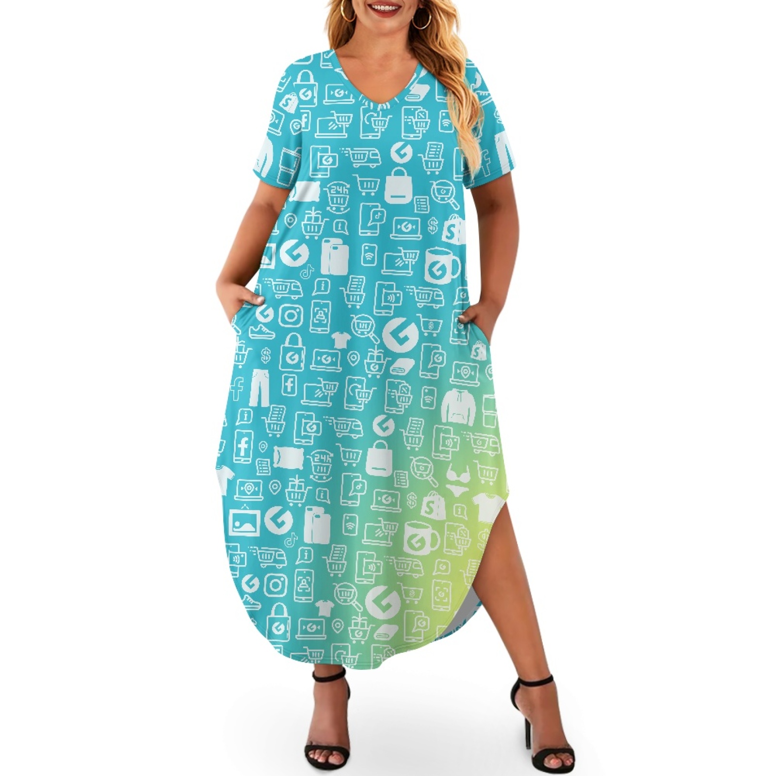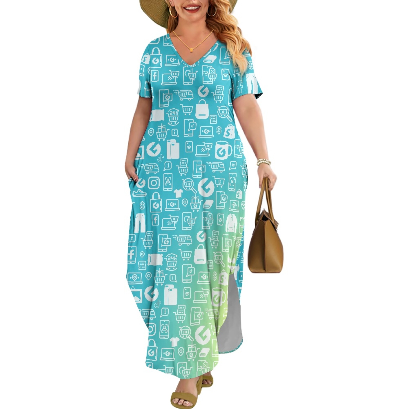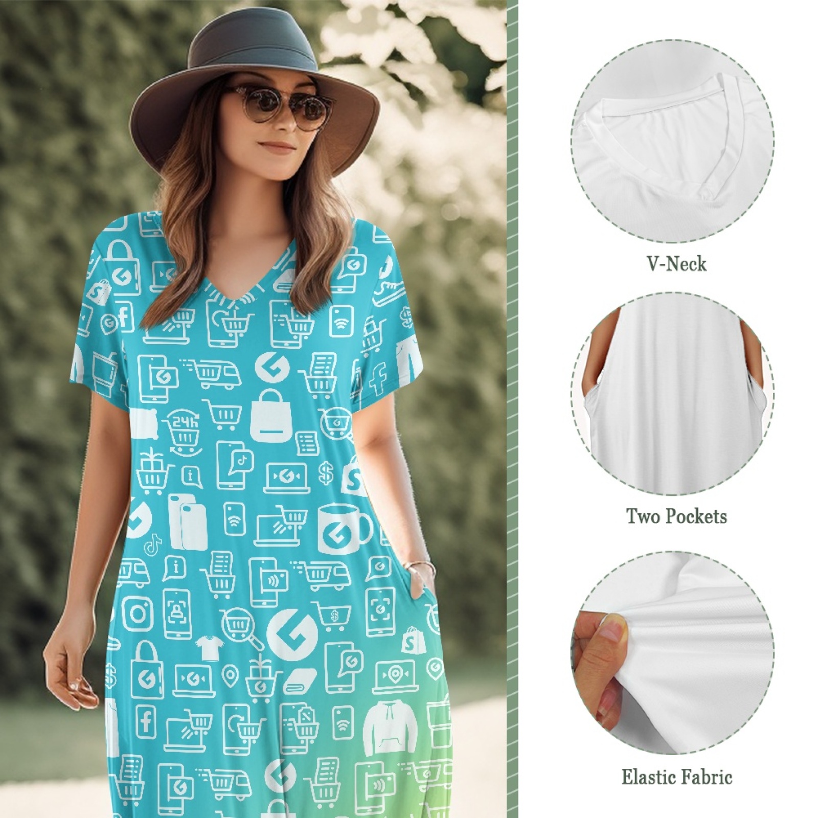 Ladies V-neck short-sleeved dress