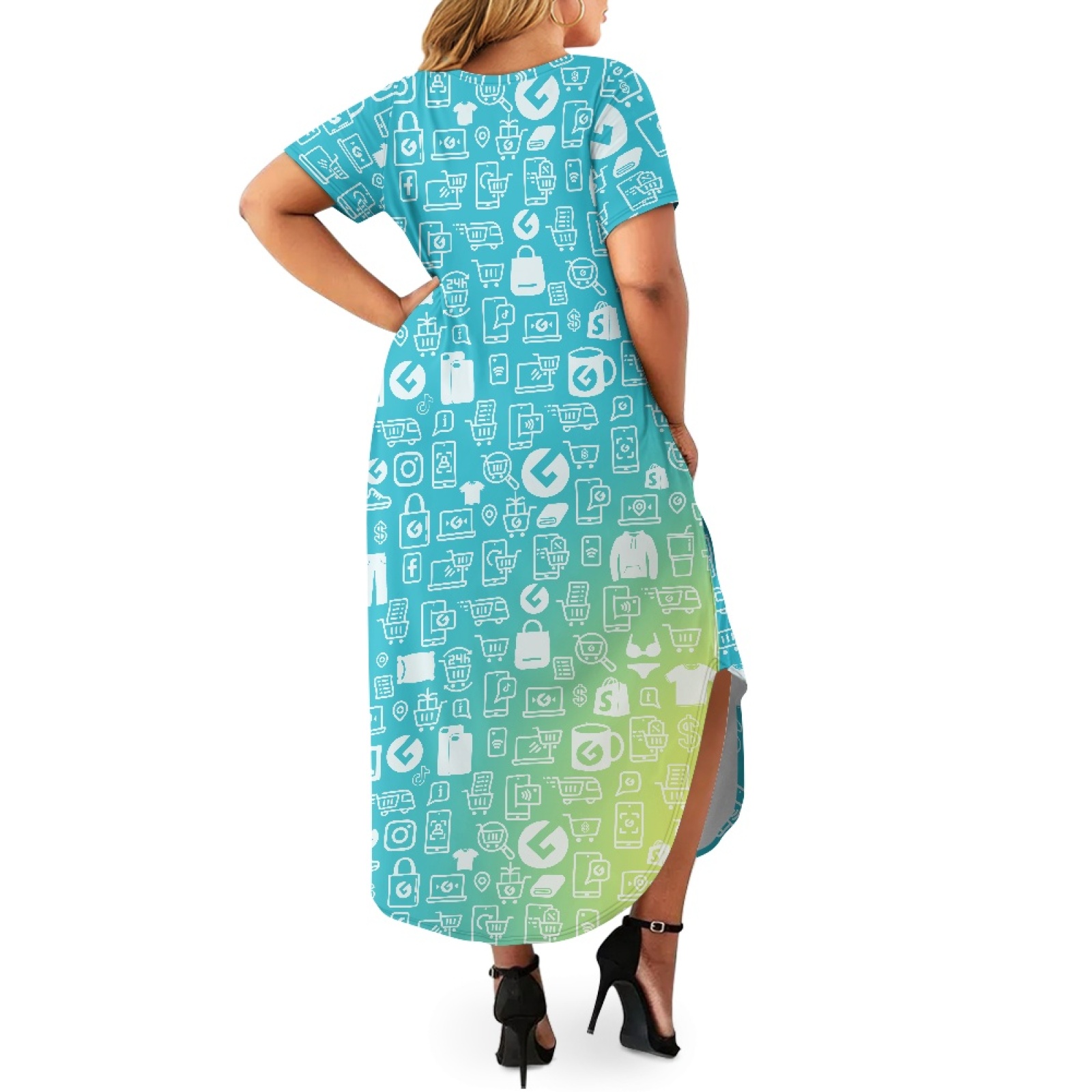 Single short sleeve off-shoulder slit skirt